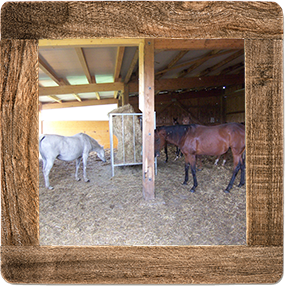 Im Herzen des Stalls befinden sich zwei Heuraufen, um den Pferden 24 Stunden Rauhfutter bieten zu können.